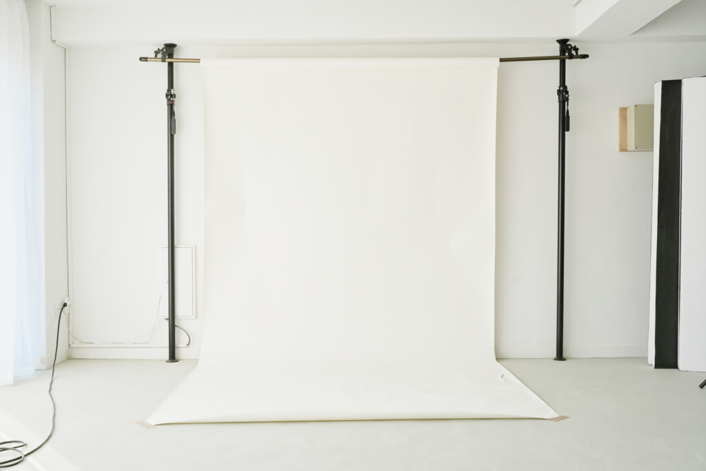 - 光の質:バックぺーパー・背景布等を使えるスタジオライティング。