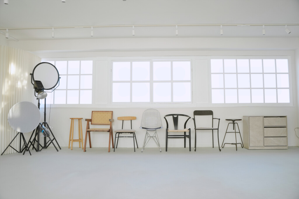 studio µ(ミュー)は、南北両面に配置された大窓から、一日を通して異なる表情の自然光が降り注ぐ撮影スタジオです。